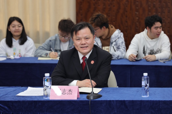 法学院院长乔宝杰向与会人员介绍了“实习法官助理训练营”项目的实施背景、选拔方式和项目特点,并从双师制管理、精准化考核、有组织的实习和项目全周期管理等4个方面作了说明。