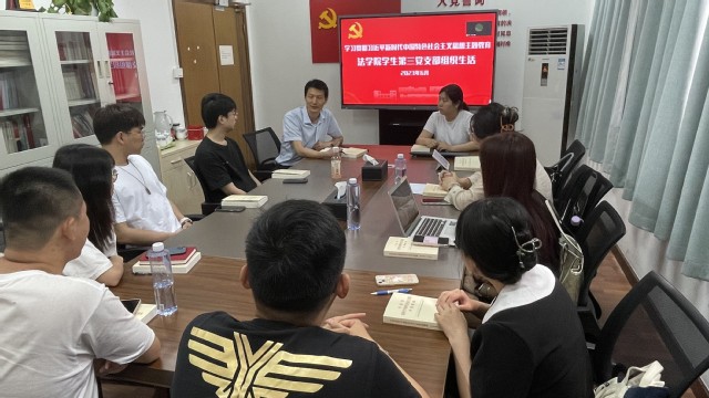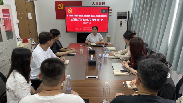 为深入学习习近平新时代中国特色社会主义思想,庆祝中国共产党成立102周年,6月29日,法学院学生三支部召开“从党史中汲取前进动力”主题党日,切实把新思想转化为坚定理想、锤炼党性和指导实践、推动工作的强大力量,推进主题教育走深走实。法学院党委副书记商志民受邀参加并为学生党员上党课,活动由党支部书记冯予婧主持。
