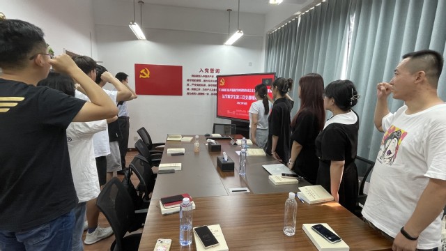 商志民结合视频学习,以“党史回顾”为主要内容为党员上党课,他指出青年党员应时刻加强理论学习,勿忘党史、勿忘使命,勿忘誓词,组织上入党一生一次,思想上入党一生一世。会上,商志民带领全体党员重温入党誓词。