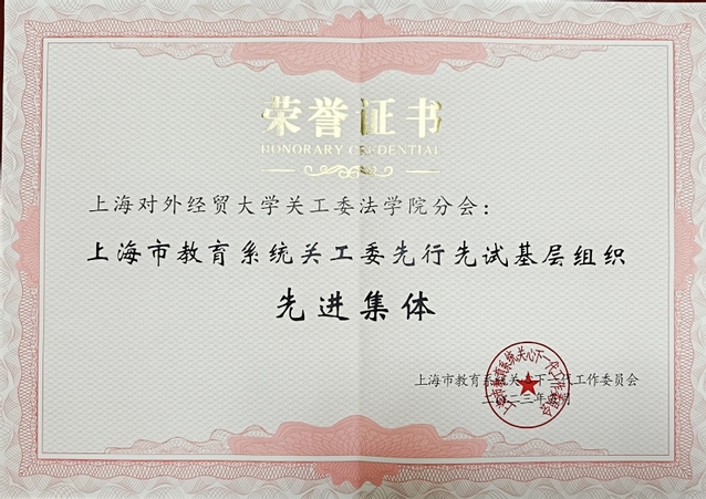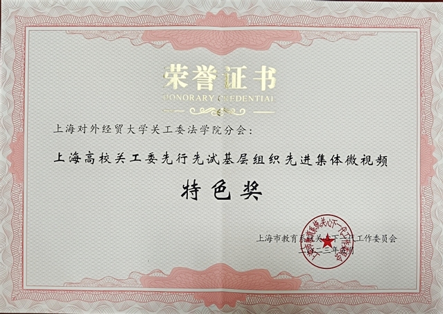 关工委法学院分会获上海市教育系统关工委先行先试基层组织先进集体称号,同时获得上海高校关工委先行先试基层组织先进集体微视频特色奖。