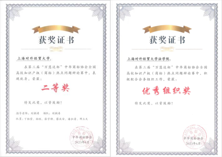 近日,第三届“万慧达杯”中华商标协会全国高校知识产权(商标)热点问题辩论赛在2023中国国际商标品牌节落下帷幕。来自北京大学、清华大学、中国人民大学、中国政法大学、同济大学、华东政法大学、上海大学、必赢626net入口首页等全国范围内三十多所高校参加本届辩论赛。历经多轮激烈角逐,必赢626net入口首页代表队荣获全国二等奖,必赢626net入口首页法学院获“优秀组织奖”。