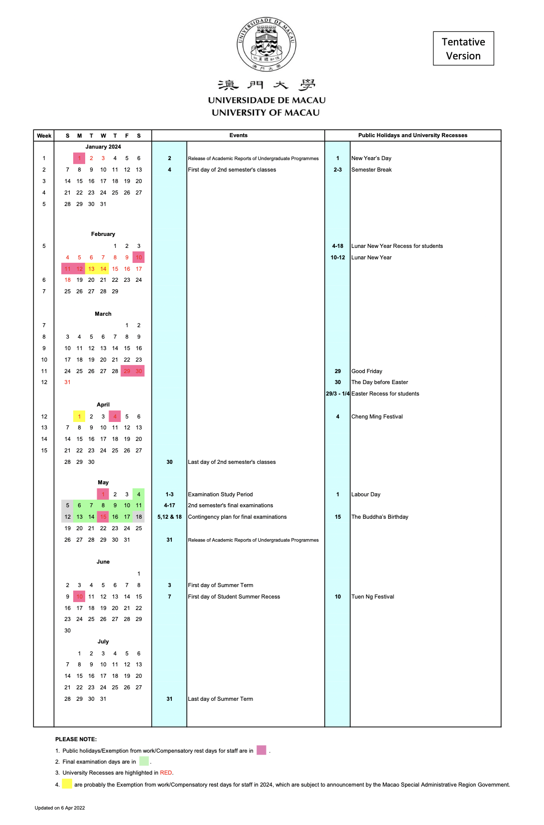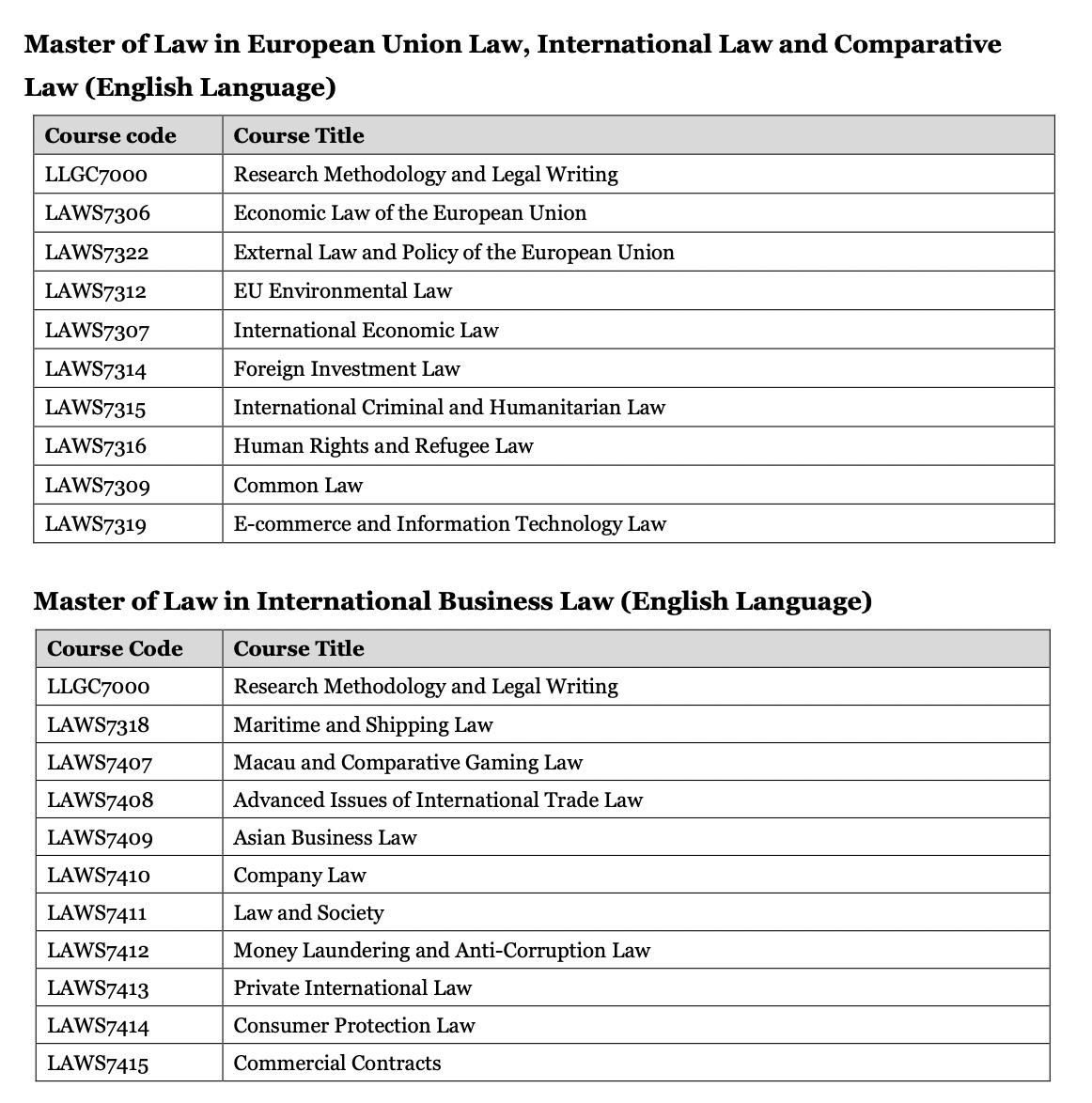附件1: List of Courses (Tentative), 2nd Semester 2023/2024 Faculty of Law, University of Macau