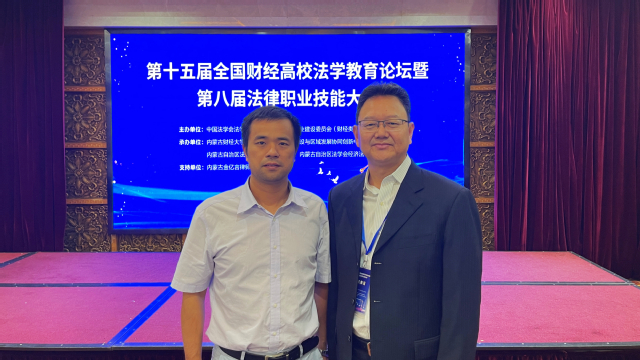 9月9日,由中国法学会法学教育研究会、中国法学会法学教育研究会法学特色专业委员会主办、内蒙古财经大学法学院承办的第十五届全国财经高校法学教育论坛在呼和浩特举行。我院院长乔宝杰教授、法硕中心主任王诚副教授参加了会议,乔宝杰教授以《高层次涉外经贸法治人才培养的探索与设计》为题作了主旨演讲。