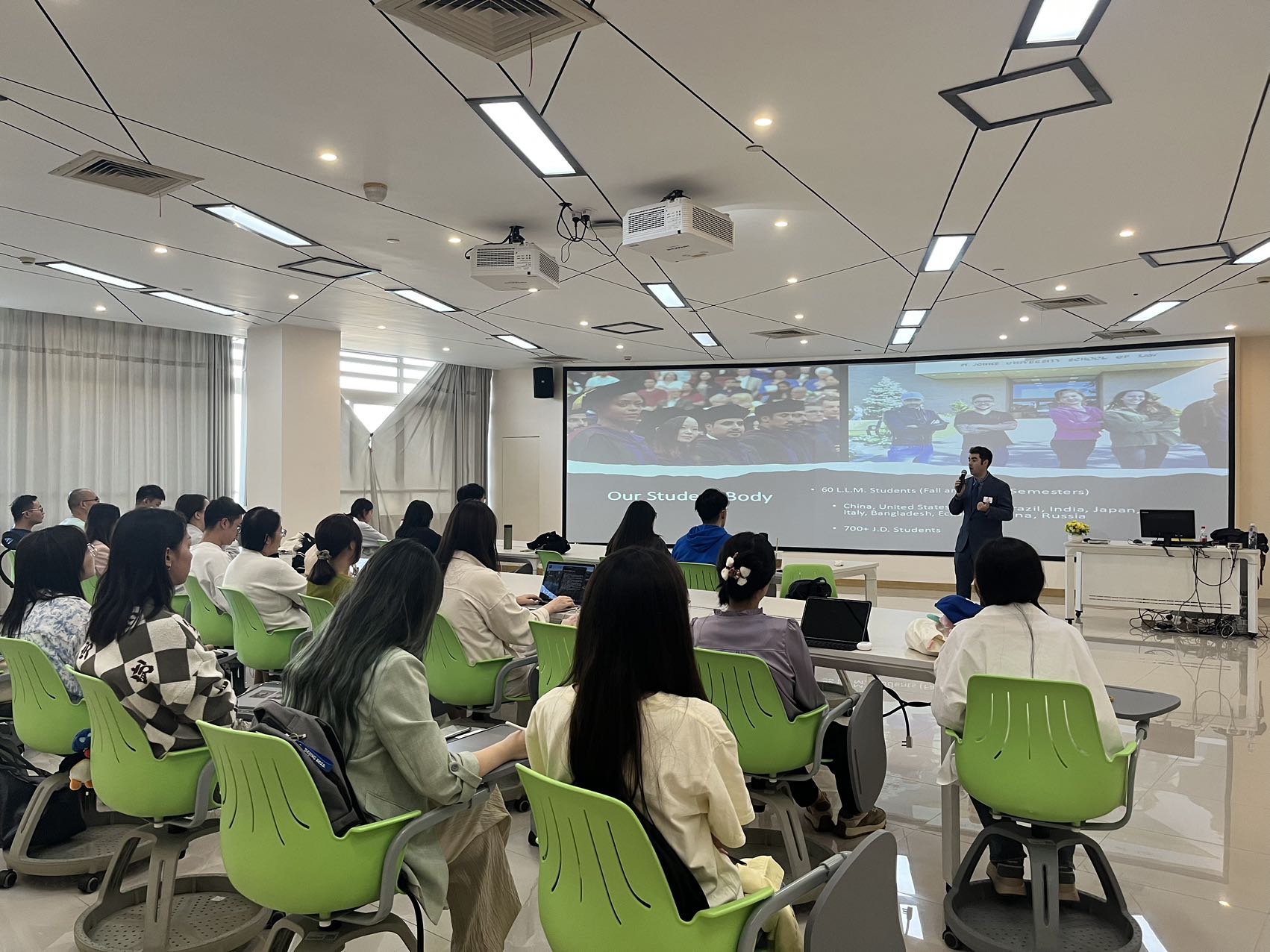会上,双方回顾了十余年来的合作交流过往,以及目前合作项目的实施情况。美方表示期待未来两校能进一步加强合作,并介绍了在现有合作基础上的拓展合作计划。会后,Carl Olson副主任与徐琳钧老师前往信息楼301为我院学生进行了LLM双学位项目的宣讲,详细介绍了圣约翰大学法学院的教学背景、师资力量以及LLM项目的具体要求,并在提问环节与同学们进行了热烈互动。