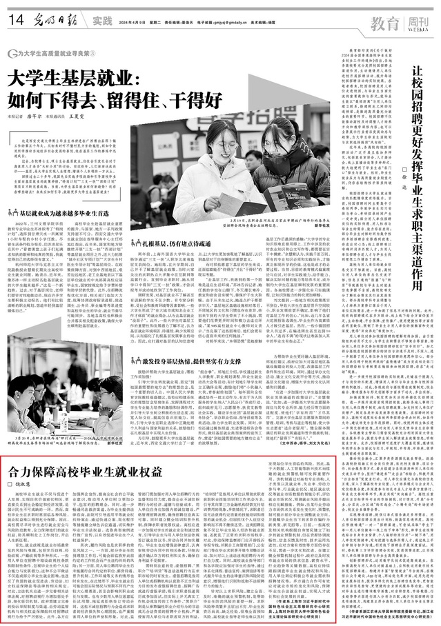 高校毕业生就业不仅与促进个人发展、实现自我价值密切相关,更直接关系到社会稳定和经济发展,是国计民生不可或缺的一环。然而,高校毕业生在求职时常面临各种风险,就业权益难以得到充分保障。因此,高校需尽早对学生进行就业安全与风险防范教育,全力保障他们的就业权益,助其顺利走上工作岗位,开启人生新征程。