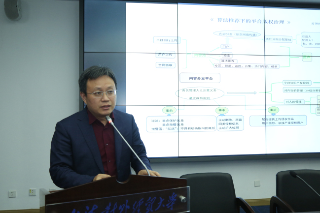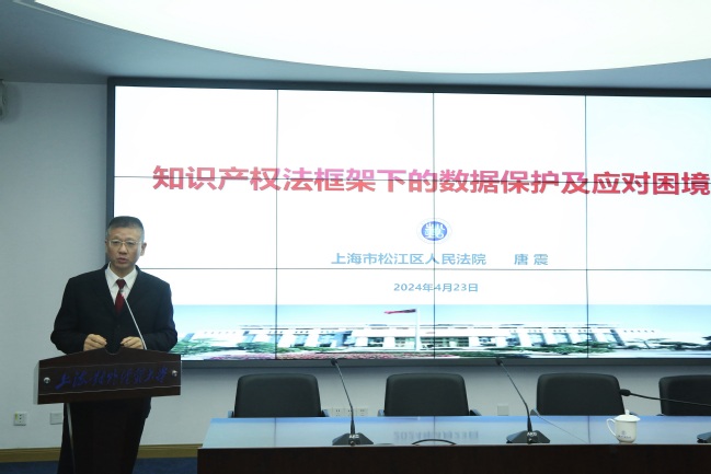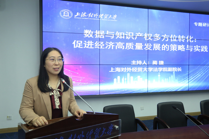 专题研讨环节以“数据与知识产权多方位转化:促进经济高质量发展的策略与实践”为主题,由法学院副院长蔺捷主持。上海市知识产权局战略规划处处长徐上、松江区人民法院副院长唐震、市检察院第三分院检察官王新新、上海海关法规处副处长吕晨鸽、浦东新区人民法院知识产权庭副庭长陶冶、国浩律师(上海)事务所合伙人黄超、对外经济贸易大学法学院教授卢海君分别围绕“强化四种思维提升数据知识产权试点质效”“数据权益的知识产权保护困境及应对”“以高质效综合履职护航经济高质量发展”“知识产权边境保护的新发展”“商业秘密保护的司法实践”“企业上市数据与知识产权审核要点”“互联网平台算法推荐的法律规制”等主题进行了理论前沿和实践经验分享。