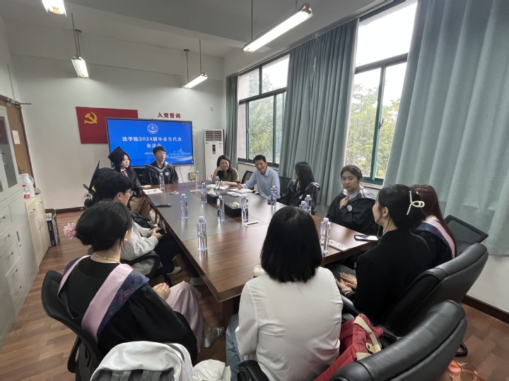 在毕业生求职的关键时期,为进一步解决他们在就业中遇到的困难,做好求职指导,增强就业信心,5月21日下午,法学院在博闻楼204会议室举行2024届本科毕业生代表座谈会。法学院党委书记黄静与10名毕业生进行面对面交流,表达关心,悉心指导。党委副书记商志民和本科毕业班辅导员闵时涛参加座谈会。