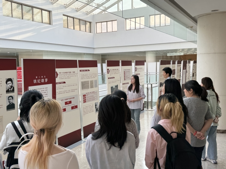 本次主题展史料由中共四大纪念馆提供,分为“思想探源”“铁纪萌芽”“革命实践”“机构首创”和“继续前行”五个单元。在志愿者讲解下,学院师生通过一组组数据、一张张图片,一个个重要历史事件,对我们党早期纪律建设历史有了更为深入和直观地认识,更加体会到了纪律建设在我们党发展壮大过程中所发挥的重要作用,大家同上一堂别开生面的党纪专题党课。