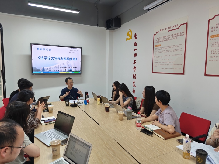 为提高法学院学生的科研水平,营造浓厚学术氛围,持续推进优良学风建设,6月4日下午法学院依托《外贸法学评论》编辑部举办“博闻享法会”首场学术沙龙,邀请解正山教授为学生做学术写作指导。