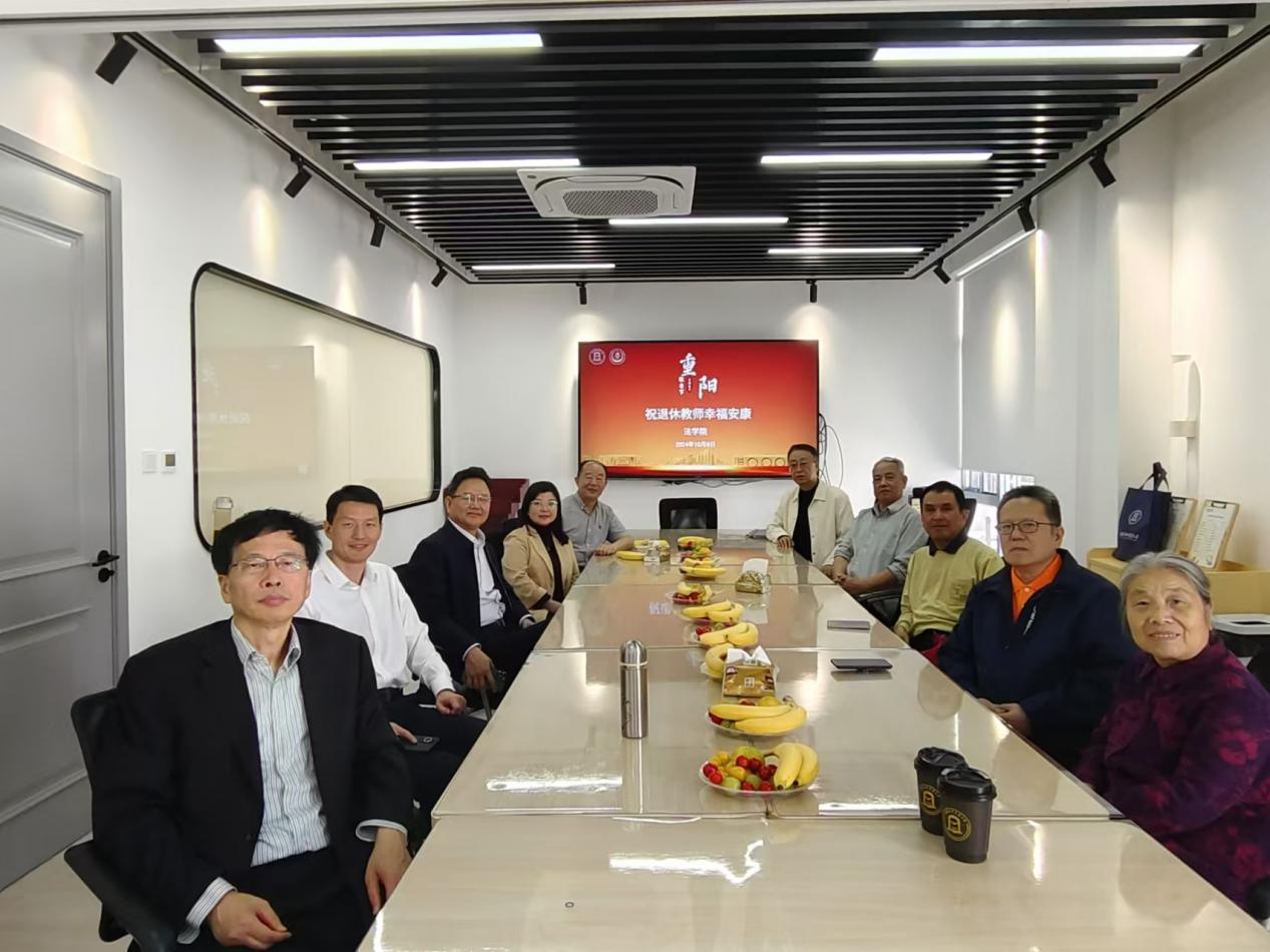金秋十月,丹桂飘香。在重阳佳节来临之际,法学院于10月8日举行了敬老慰问活动,邀请学院退休教师回到学院座谈交流,共话发展。法学院党委书记乔檀、院长乔宝杰、副书记商志民与退休教师一同参加了活动。