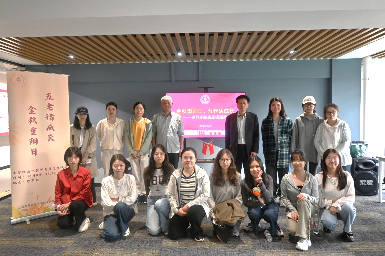 慰问活动之后,学院在“一站式”学生社区举办了“金秋重阳日,‘五老’话成长”师生座谈会。