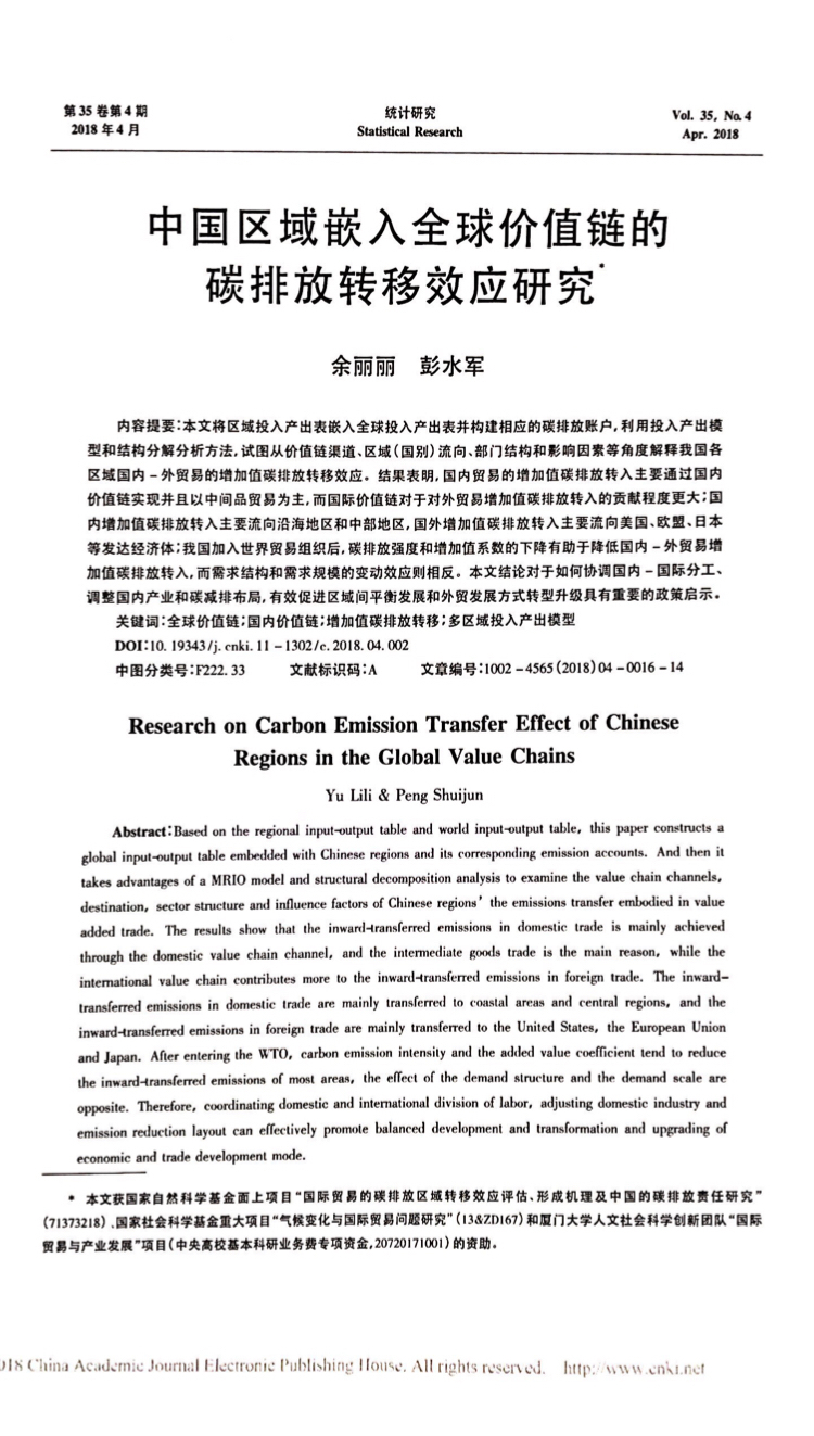 中国区域嵌入全球价值链的碳排放转移效应研究