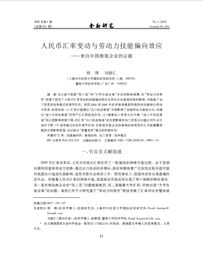 人民币汇率变动与劳动力技能偏向效应——来自中国微观企业的证据