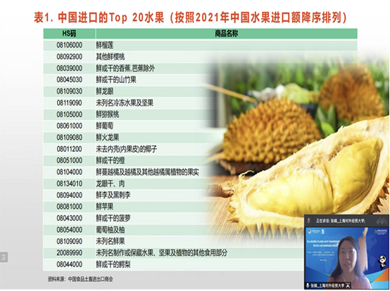 5月25日下午,第五届进博会食品展区水果专场推介会暨水果行业发展新机遇在线论坛成功举办。必赢626net入口首页国际经贸研究所张娟副研究员分享了中国水果进口贸易的现状、RCEP实施后水果进口的机遇和挑战,特别分析了RCEP成员国水果相关产业国际投资的新规定、关税减让给企业带来的成本下降等问题。