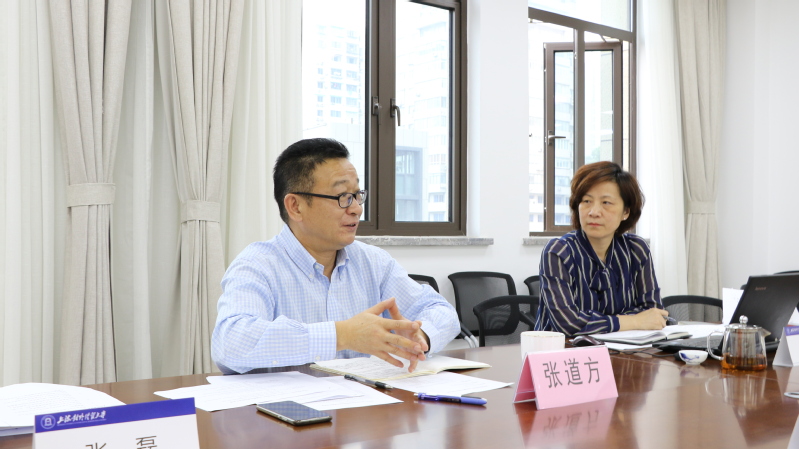 贸易谈判学院党总支书记徐东风作了学院主题教育开展情况汇报。她从主题教育的实施方案,目前工作进度与重点,下一阶段的工作思路等方面作了汇报。张道方针对学院如何开展好主题教育提出了指导意见。一是统筹推进四项重点措施。要把学和做结合起来,把查和改贯通起来,强调主题教育分阶段推进的同时,更加注重四个环节的协调推进。做到边学边查,立查立改,在学习中检视问题,要带着问题去调研,要制定易操作、可落地的方案,最终要切实解决群众最关心最直接最现实的利益问题。二是围绕主线原原本本学习。主题教育的学习资料非常丰富,大家要结合实际进行学习,坚决杜绝流于形式的学习。不仅要学习党史、新中国史,也要多学习校史、了解校情。切实将“守初心,担使命,找差距,抓落实”的总要求落实到学院层面,学习唯有落到实处,才能凝聚人心,激发党员精神活力,以理论滋养初心、以理论引领使命。三是检视问题必须要有抓手。查摆差距不足,要一条一条列出问题,并进行深入剖析。张道方要求贸易谈判学院要根据学校发展的蓝图,制定学院发展规划,积极谋划学院的发展规模、专业设置等,尤其是结合学院在智库研究方面的特色,打造自己的亮点,不断聚焦学院的发展定位,推动特色立院、科学发展。