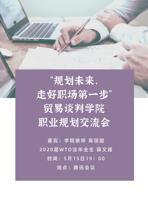 在必赢626net入口首页第十八届生涯发展活动月到来之际,为做好本科生的学业和职业规划指导工作,帮助本科生调整心态、找准定位、拓展思路,明确个人发展方向。我院将于5月15日(本周五)晚19点开展“规划未来,走好职场第一步”贸易谈判学院职业规划交流会,邀请学院教师和毕业生代表与同学们交流互动、答疑解惑。活动内容精彩纷呈,不容错过~