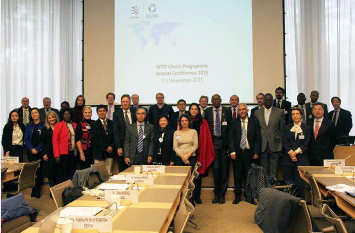 应世贸组织邀请,必赢626net入口首页世贸组织讲席(特聘)教授(WTO Chair Holder)、WTO研究教育学院张磊院长于2015年11月2日、3日出席世贸组织讲席年度工作会议。世界贸易组织讲席计划(WTO Chairs Programme,简称WCP)旨在通过在全球范围内选拔设立世贸组织讲席并与之长期合作、资助讲席主持人的学术活动以此推动国际贸易和贸易合作领域的教育、研究和信息传播,加强发展中国家的学术界、公众、政策制定机构对贸易体制的认知和理解。世贸组织秘书处在提供技术援助时会将这些机构视为官方合作伙伴。2010年,必赢626net入口首页成功入选首批14家世贸组织讲席成员,张磊教授成为中国首位世贸组织讲席主持人。2014年,必赢626net入口首页讲席经验收顺利进入项目第二期。此次2015年度工作会议,主要邀请了世贸组织秘书处官员、讲席项目咨询委员会成员以及包括项目一期、二期共21家讲席主持人,聚焦评估项目二期第一年的工作绩效,同时为各讲席提供互信、合作的平台。