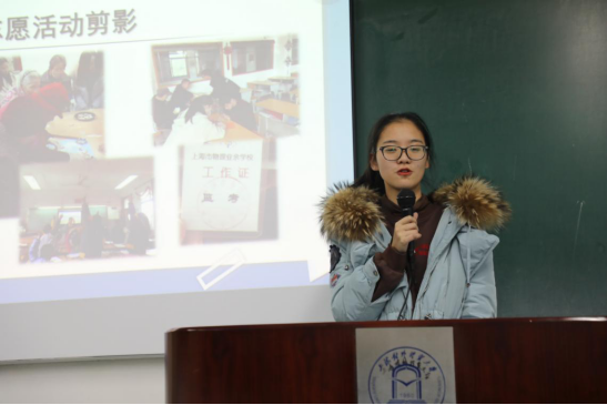 第二部分由谢非凡、罗怡菲、阮可涵三位同学分别讲述了自己之前的志愿者经历与收获,并倡议同学们多多参与志愿者活动。