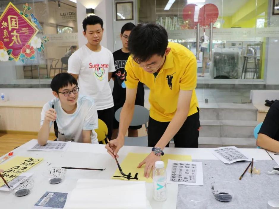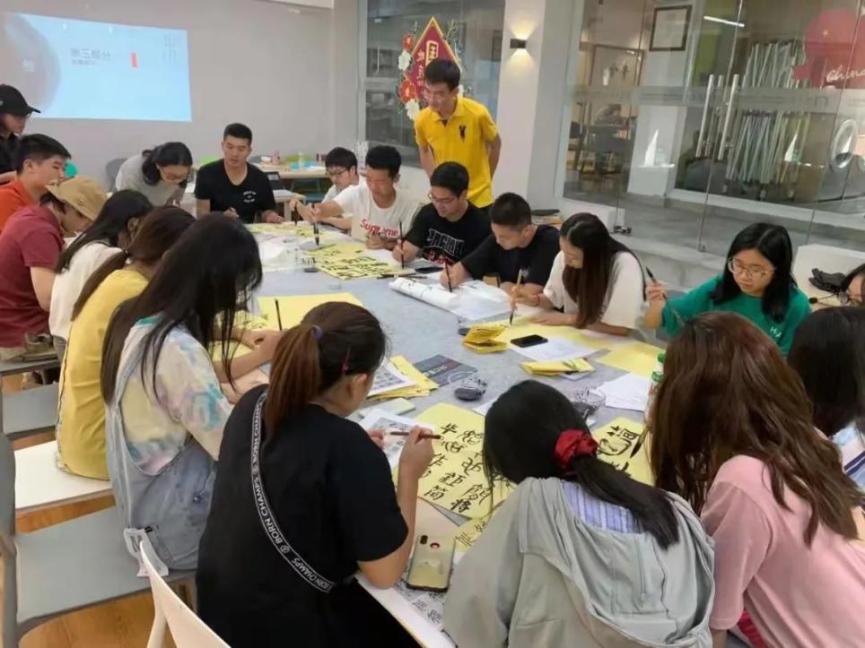 今年恰逢中国共产党成立100周年。同学们现场还临摹了中共一大代表董必武先生给中共一大会址的“作始也简,将毕也钜”题词。在观摩了一些书法名家的作品后,同学们根据提供的学习材料单上题材和自己准备的内容,积极创作自己“随心”的艺术创作,并进行展示、合影留念。