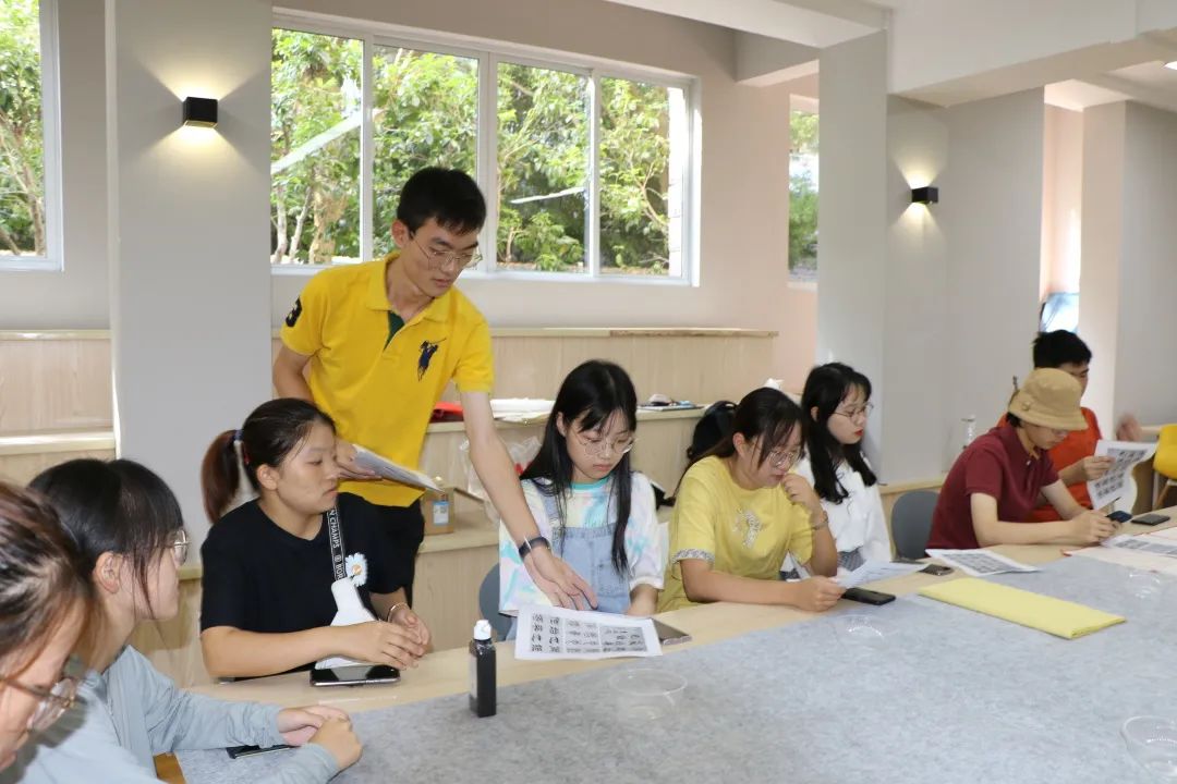 授课中,他结合自己学习书法的经验从理论和实践两个方面为大家进行深入讲解书法写作技巧。通过学习,同学们首先认识了书法作为中华民族传统文化而需要在当下时代被传承弘扬的重要意义,学习了“知白守黑”在书法中的运用,了解了书法作为一门艺术在创作的过程中要“随心”的观点,为接下来的写作打下基础。