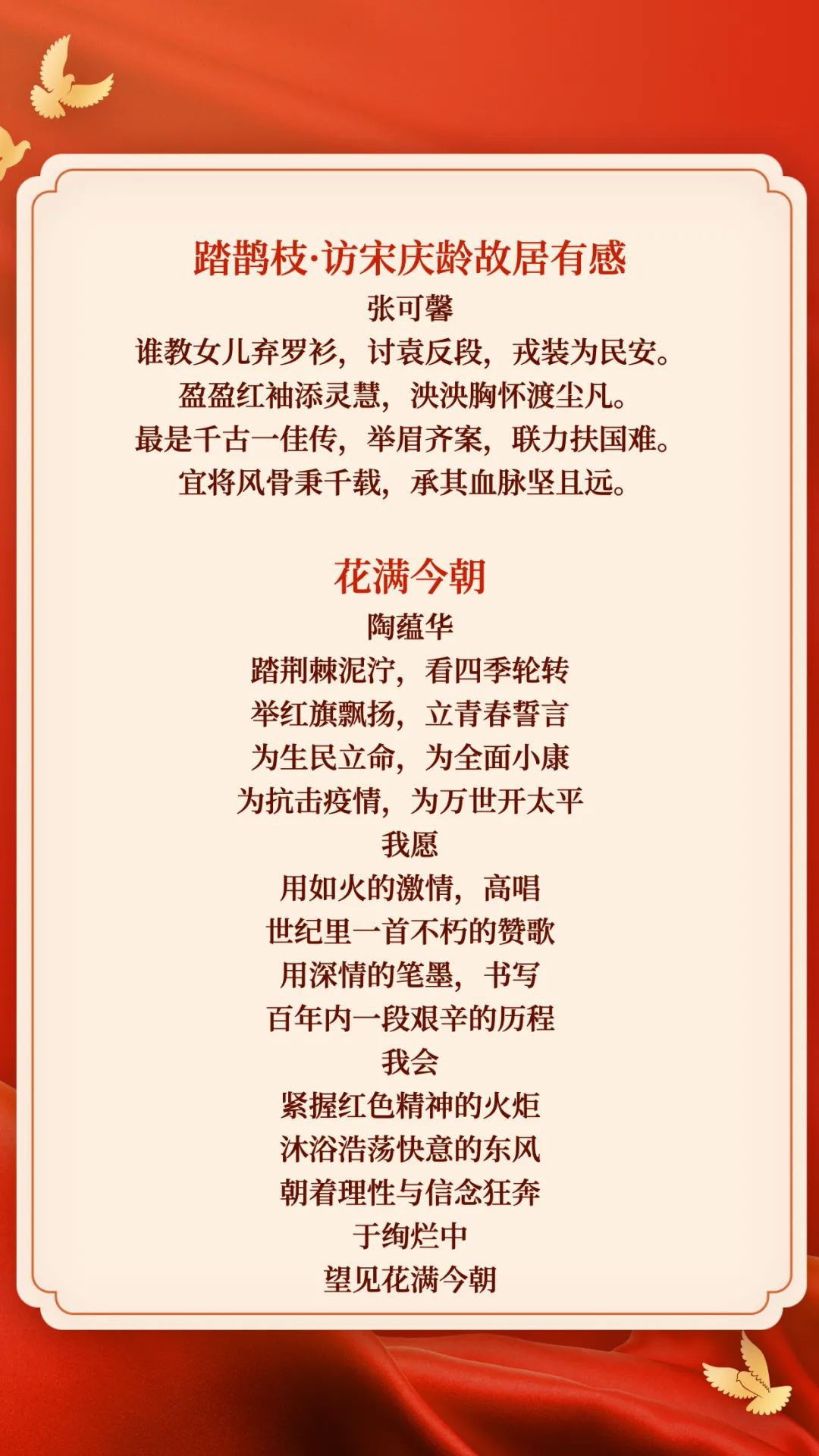 国际经贸规则2001支部小组根据红色地标打卡创作了《鹊踏枝·访宋庆龄故居有感》和《花满今朝》两首原创诗词作品,表达了对革命先辈们在革命道路上砥砺前进的敬佩。
