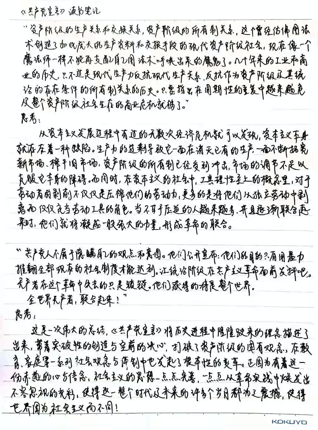 在领学的同时,各支部还开展集体学习。国际经贸规则1901团支部集体阅读《共产党宣言》,从源头探秘马克思主义真理的“密码”,品味其中蕴含的“真理的味道”。国际经贸规则2001团支部以寝室为单位,开展《习近平与大学生朋友们》围读会,交流展示读书笔记,记录围读过程,并开展两场集体读书会,交流分享读书成果。国际经贸规则2002团支部进行红色书籍分组学习,团员还撰写读书报告,记录思想感悟。