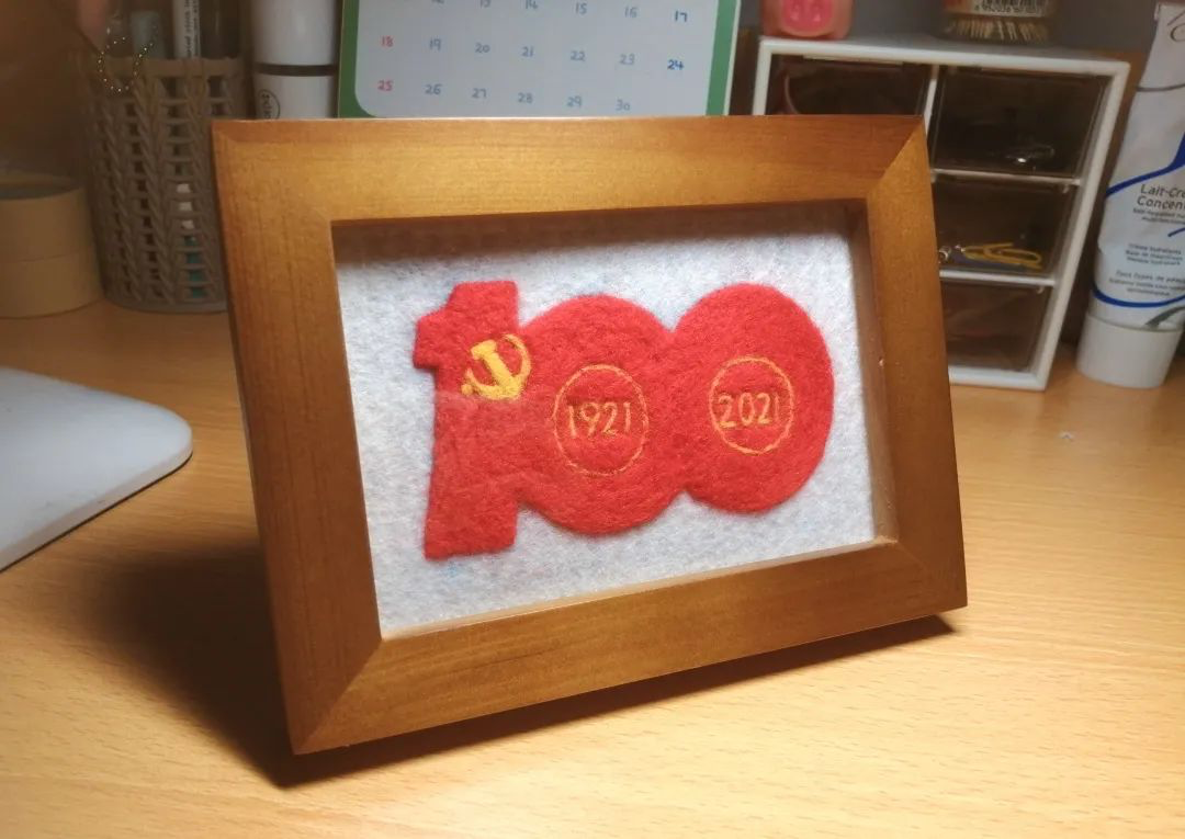 学院各团支部发挥团员个人所长,以建党百年为主题,以书法、篆刻、羊毛毡刺画、窗花、数字油画等形式,创作各类文创作品,创意新颖,寓意丰富,做到让红色文创产品走进团员青年,共同为建党百年献礼。