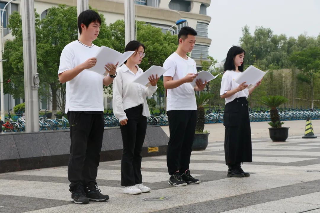 随后,来自经贸规则2001班的张可馨、黄宗恺以及来自经贸规则2002班的毛俊莉、张子怡同学带来了诗朗诵《百年庆典》。他们以饱含深情的诗朗诵献礼建党百年,表达出了当代青年传承红色基因,不负韶华,与党和时代同向前进的青春之气。