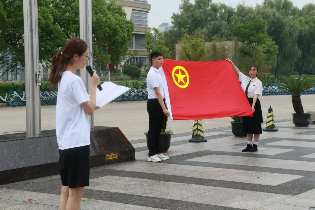 接着,来自经贸规则2002班的李味佳同学作为团员代表在国旗下作《续写新时代中国青年运动新篇章》的主题演讲。站在“两个一百年”奋斗目标历史交汇点上,作为新时代的团员青年,李味佳同学希望同学们要赓续红色血脉,把使命永担在肩,将小我融入大我,奋力书写新的传奇。