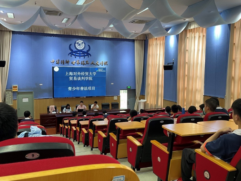 为了加强青少年法治教育,引导青少年从小树立法治观念,养成遵纪守法的良好习惯,为青少年健康成长保驾护航,助力法治中国建设,我院成立了“护航青春,普法有我”志愿者宣讲团,深入中学校园,开展普法宣传教育。10月15日首批宣讲团成员(2020级国际经贸规则专业夏宇、张子怡、周昕和周捷)前往上海师范大学附属外国语中学,面向该校同学开展普法宣传活动。