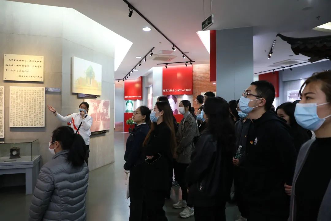 仪式结束后,大家在讲解员的带领下参观了烈士纪念馆。在一张张照片、一个个故事的背后,大家仿佛看见一个又一个先烈们舍小家顾大家、前仆后继、英勇献身的场景,被他们对共产主义的忠贞不渝的信仰所深深感动。馆内的英烈们牺牲时正值青春年华,但他们一腔热血,担起了国家和民族的责任。