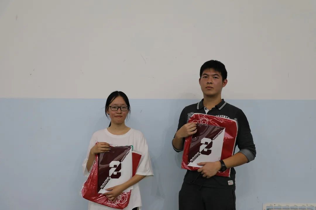 姑娘们奋力拼搏,挥洒汗水,让观众们连连拍手叫好,出色的技术和良好的配合在比赛中展现的淋漓尽致。学姐们先发制人并在后续的比赛中状态持续火热,最终夺得女双比赛冠军。