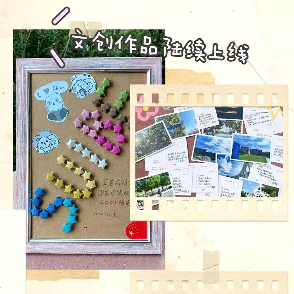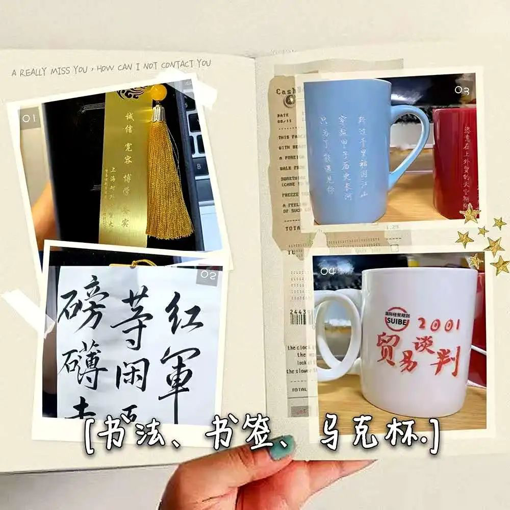 通过微博、公众号、抖音,多个平台加大宣传力度。此外,同学们纷纷发挥自己的才能,vlog,班级logo,书法作品,诗朗诵,手工相框。还有创意明信片、马克杯、书签,印刻我们写给上经贸大的三行情书。