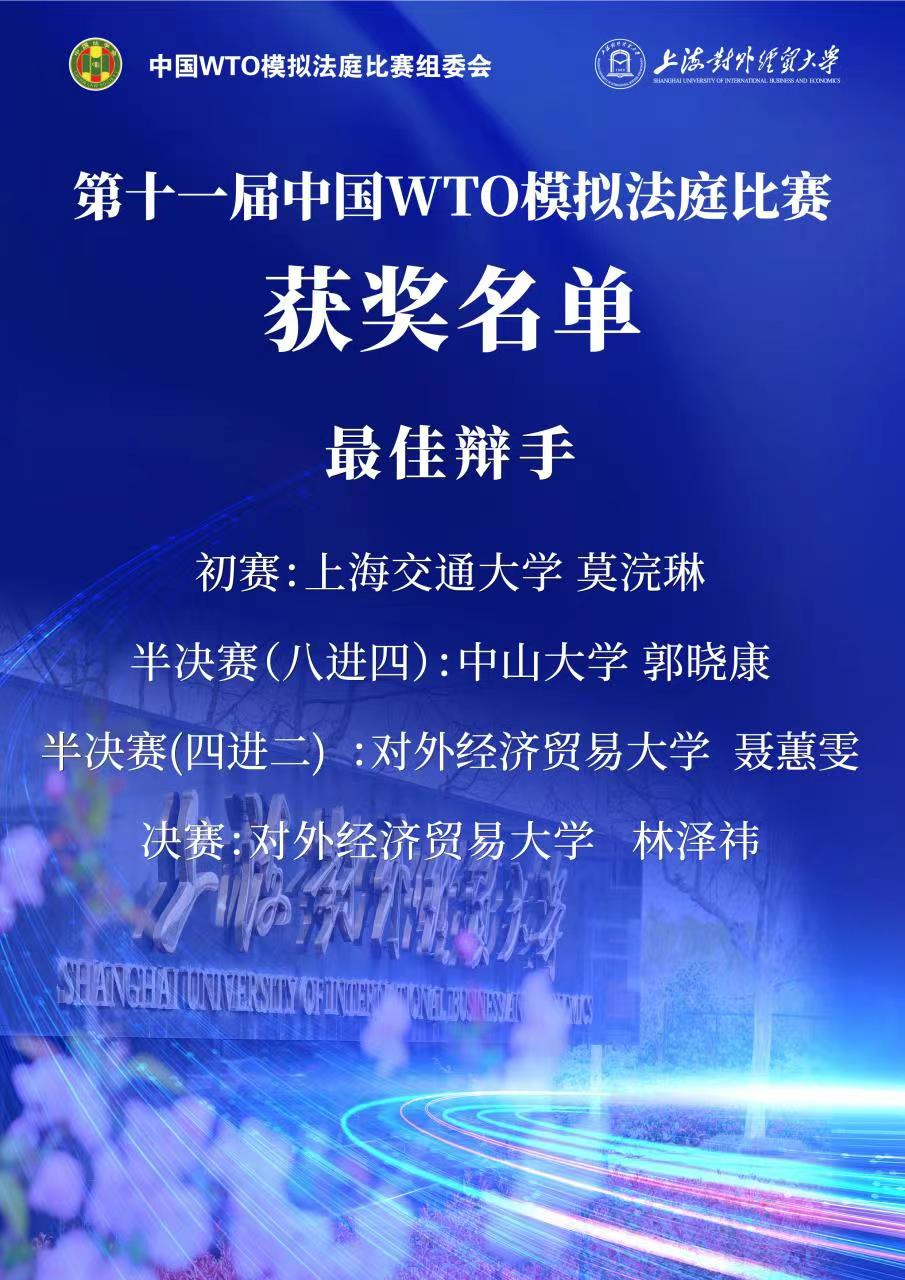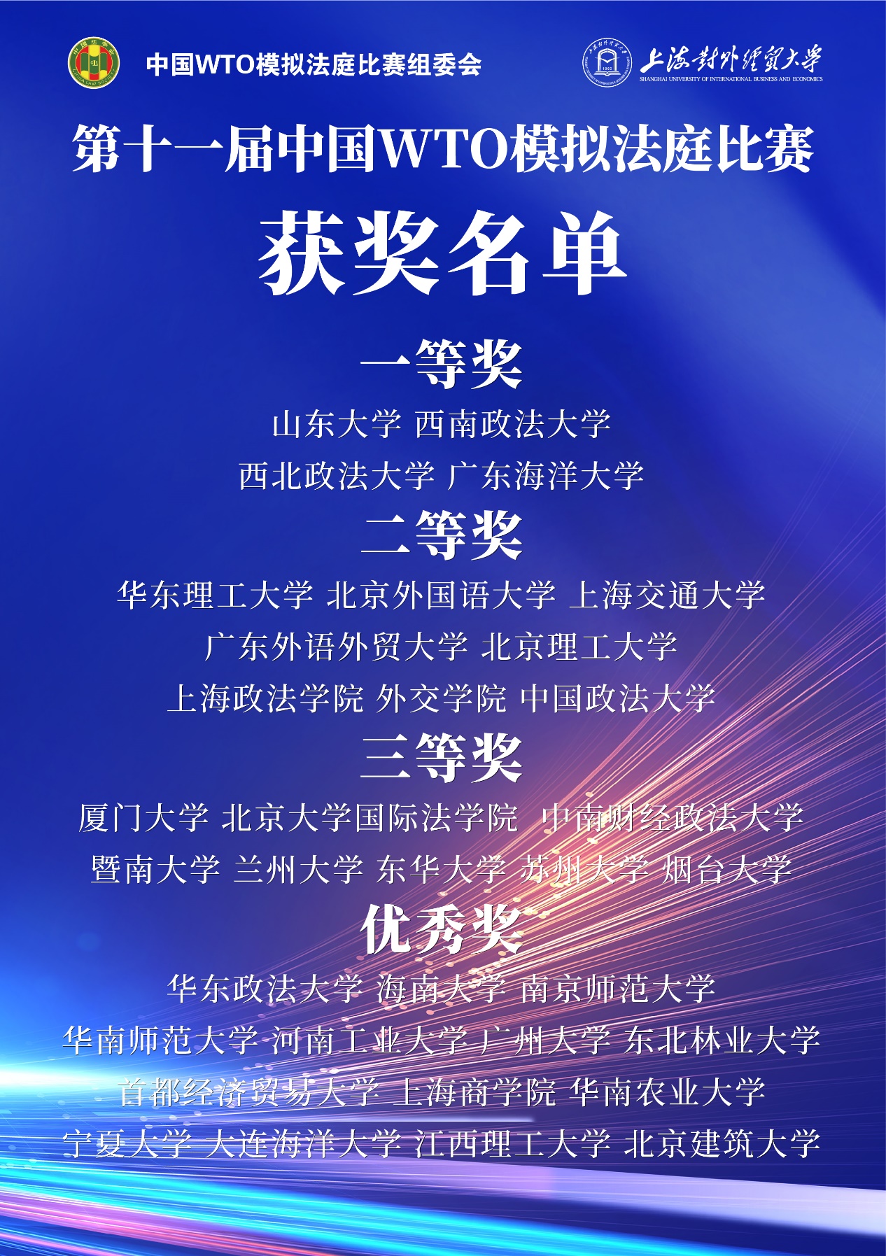 附:第十一届“中国WTO模拟法庭竞赛”获奖名单