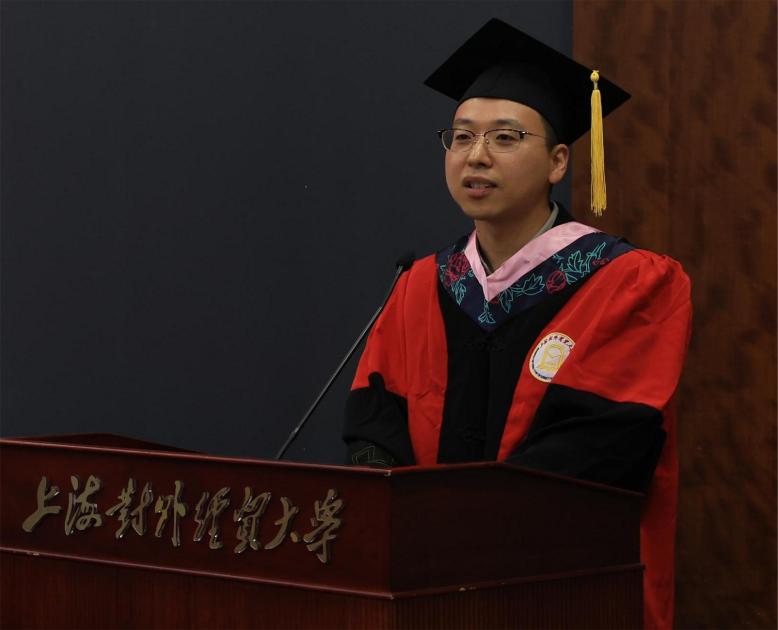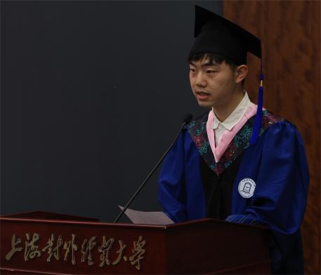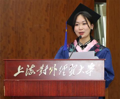 世界贸易组织法专业徐弘煜和国际商务专业徐鑫分别作为毕业生代表进行了发言,表达了对学院和老师们的感谢和对同窗的不舍之情。