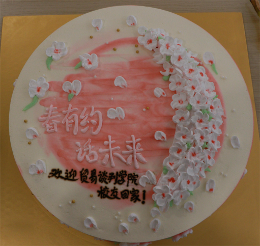 学院还在现场准备了一个主题蛋糕,祝福校友们在今后的日子里生活甜甜蜜蜜,家人团团圆圆、家庭和和美美。在欢快的笑声中,与会人员一起切蛋糕、吃蛋糕,共享这份难得的师生团聚的欢乐。