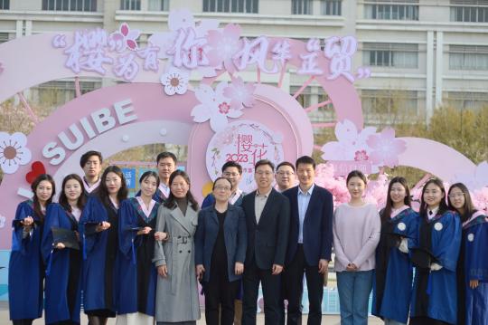 最后,大家一同在蓝天白云映照下格外美丽的樱花广场合影留念,定格学院与校友这场春之约的美好瞬间。