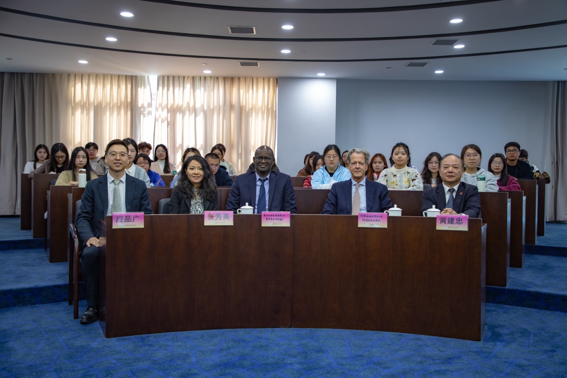 Ismaila Dieng先生首先介绍了世界贸易组织、世界银行和国际货币基金组织等国际经济组织的不同结构和功能,然后重点聚焦世界贸易组织的历史沿革、主要成就以及在当今全球贸易体系中扮演的重要角色进行了分享,最后着重强调了世界贸易组织当前面临的三大挑战:数字贸易、包容性发展以及绿色经济,并与在座师生充分交流和分享了互相的看法和观点。