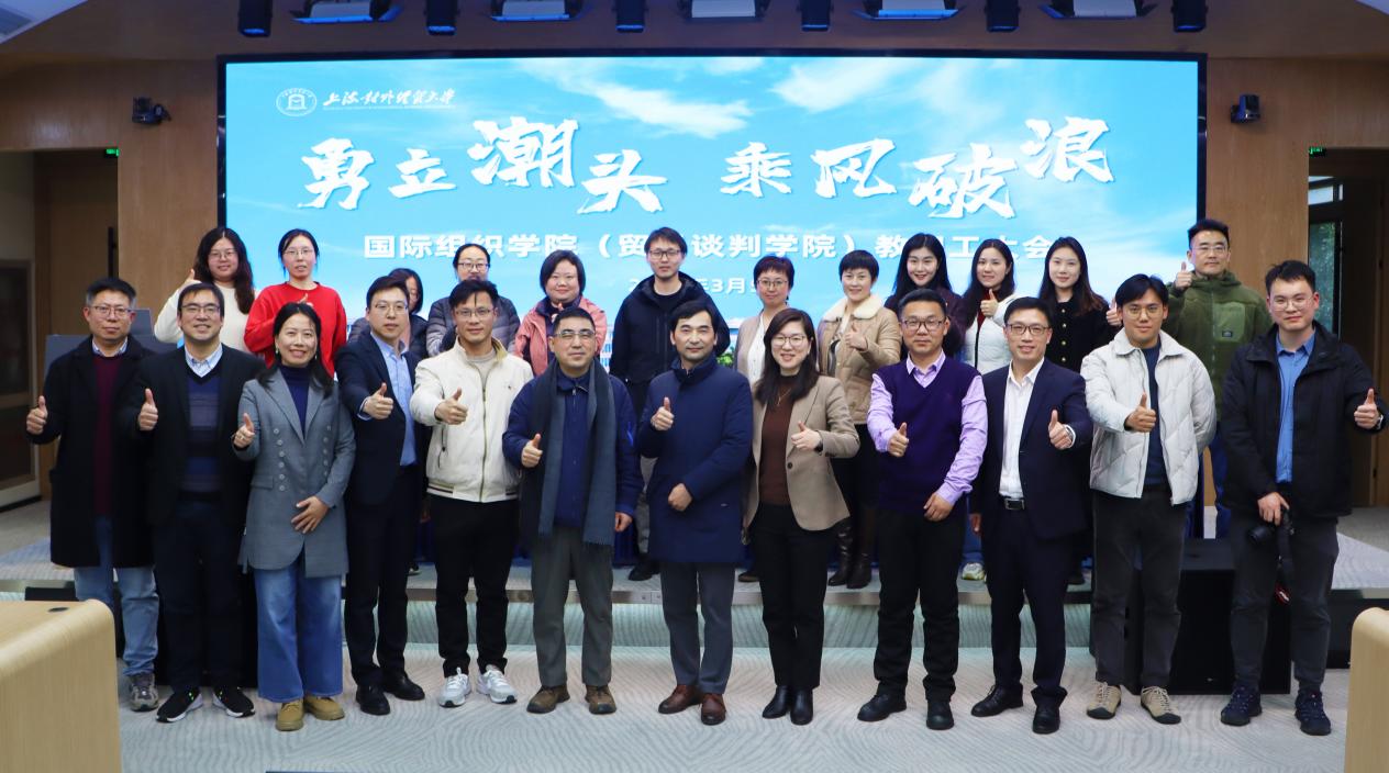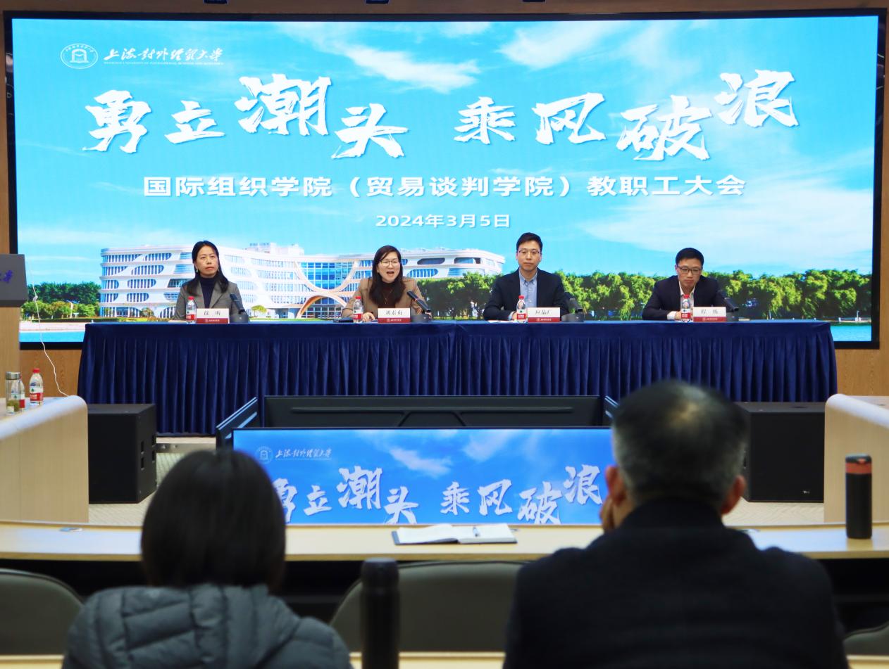 3月5日下午,国际组织学院(贸易谈判学院)在信息楼213召开第一次教职工大会,会议以“勇立潮头 乘风破浪”为主题,结合贯彻落实学校春季学期务虚会议精神对新学期工作进行部署。学院党委书记刘素贞,院长应品广,副院长徐昕,党委副书记(挂职)程栋,学院全体教职工参加会议。会议由刘素贞主持。