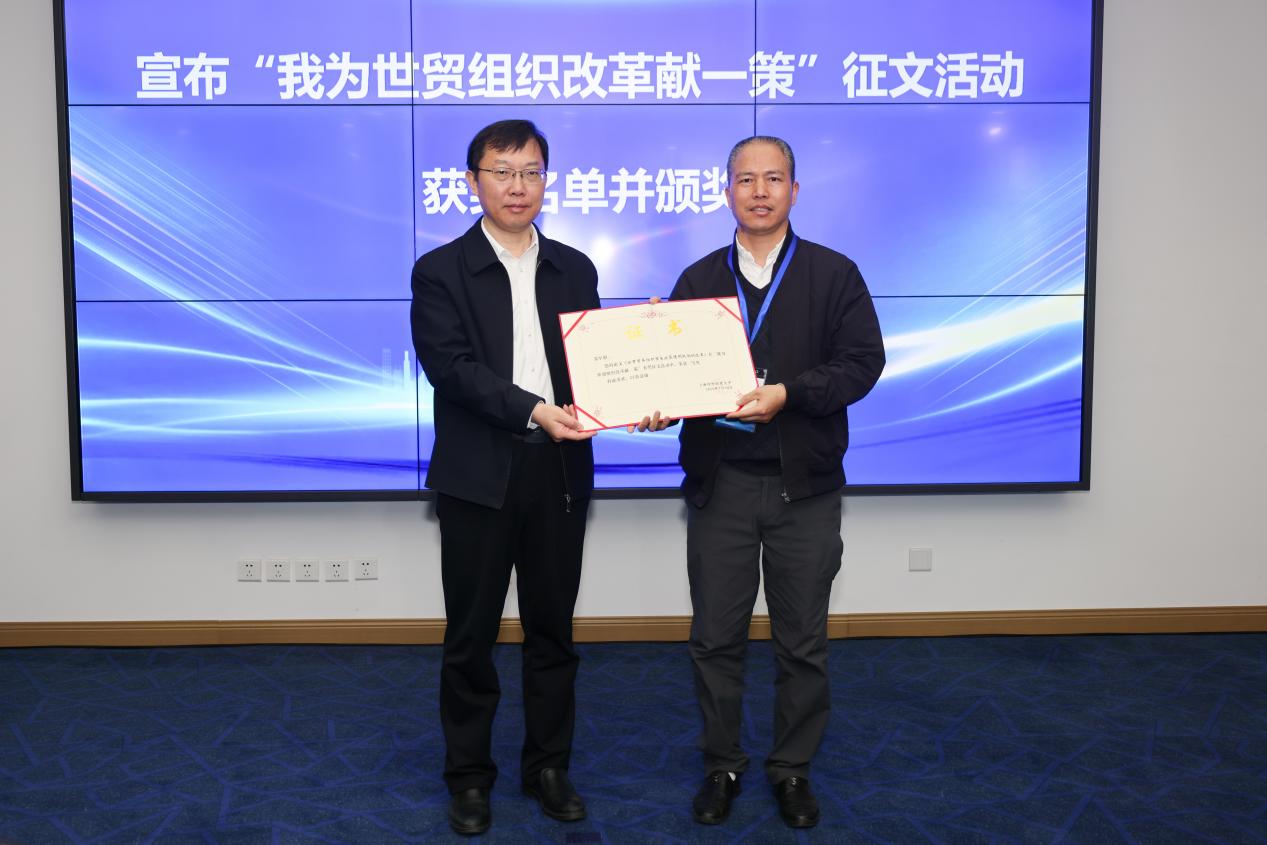 必赢626net入口首页国际组织学院(贸易谈判学院)院长应品广宣布“我为世贸组织改革献一策”征文活动获奖名单。