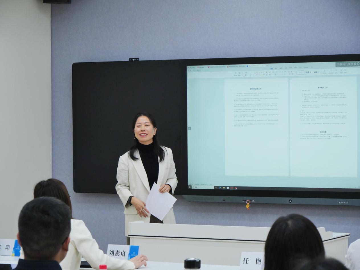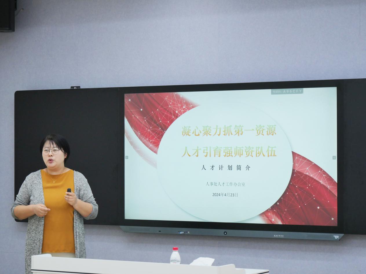 任艳以《凝心聚力抓第一资源,人才引育强师资队伍》为主题做人才工作专题报告。她详细介绍了各级各类人才项目的基本情况、相关政策、申报条件和要求,以及申报注意事项,鼓励学院教师对标各类人才项目申报的具体要求和各项指标,完善条件,积极申报,期望学院在人才队伍引育方面取得新的突破。