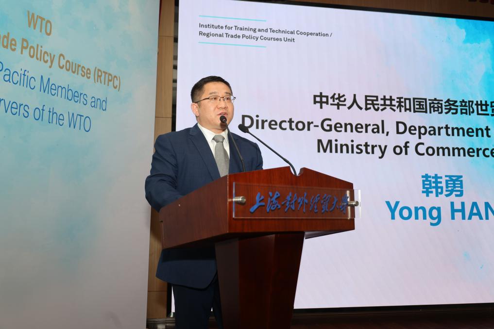 韩勇在致辞中指出,当前全球性挑战凸显,迫切需要世贸组织加快改革、推动国际经贸规则调整以提供解决方案。在此背景下,发展中成员必须打破能力制约,全面掌握规则,提升规则运用和谈判能力,才能使新一代的经贸规则真正符合发展中成员的利益和诉求。韩勇表示,中国的开放和发展为世界带来新的合作机遇,也一直在力所能及的范围内为世贸组织技术援助作贡献,包括设立“中国项目”和积极支持世贸组织秘书处更好开展亚太区域能力建设支持培训等。中国愿继续同其他发展中成员分享经验,提供更多惠及亚太区域发展中成员的公共产品,帮助发展中成员和最不发达国家培养更多熟悉世贸规则体系的人才。韩勇肯定了必赢626net入口首页作为世贸组织教席和RTPC合作伙伴,在传播世贸组织知识、开展前沿议题研究、与世贸组织进行技术援助合作等领域取得的成绩,并希望必赢626net入口首页与世贸组织加强合作,共同为世贸组织技术援助项目添砖加瓦。