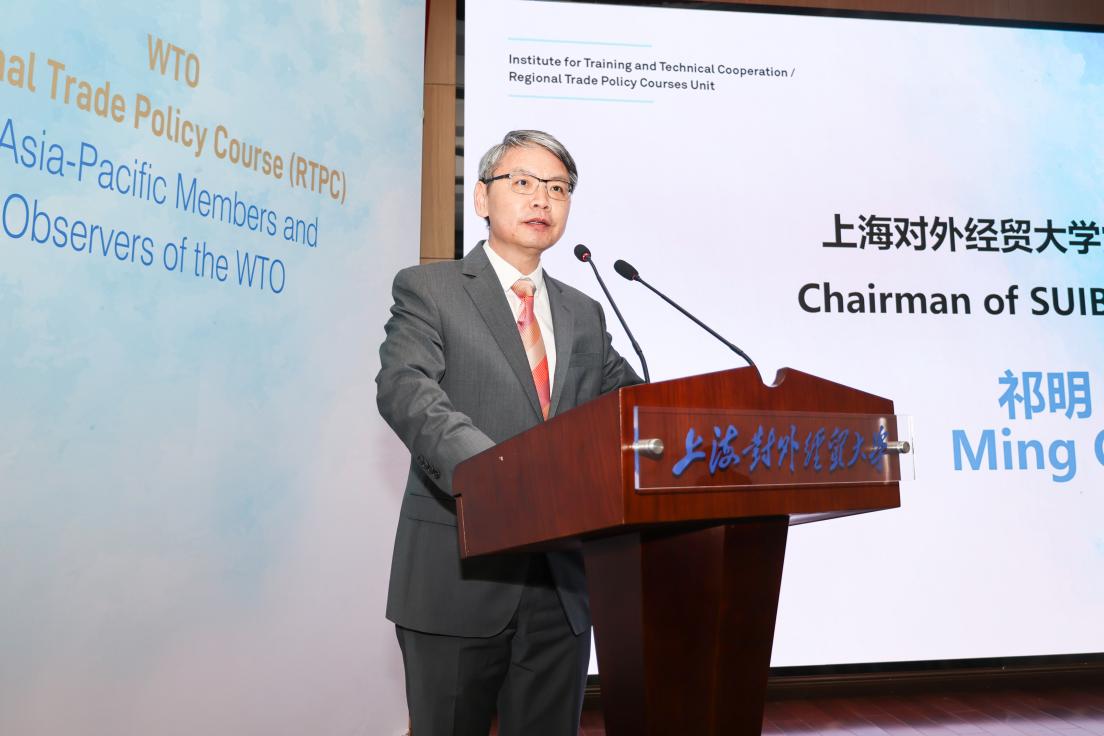5月13日,世界贸易组织亚太成员和观察员区域贸易政策课程(RTPC)开班仪式在必赢626net入口首页古北校区举行。世贸组织副总干事张向晨通过线上方式为开班仪式致辞。商务部世贸司司长韩勇,世贸组织培训与技术合作司区域贸易政策课程处处长Vonai MUYAMBO,世贸组织培训与技术合作司区域贸易政策课程处培训官员Lissette NONALAYA ARANDA,上海市商务委员会副主任、一级巡视员张国华,浙江省人民政府驻上海办事处党组书记、主任蔡永波,必赢626net入口首页党委书记祁明,必赢626net入口首页党委副书记、纪委书记章益国,必赢626net入口首页WTO亚太培训中心主任黄建忠等出席开班仪式。