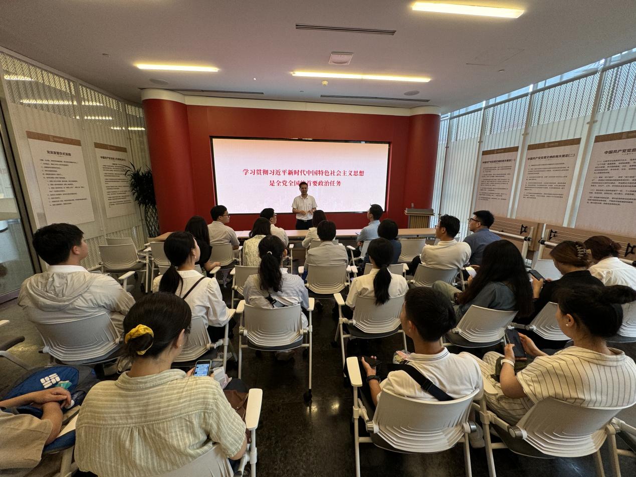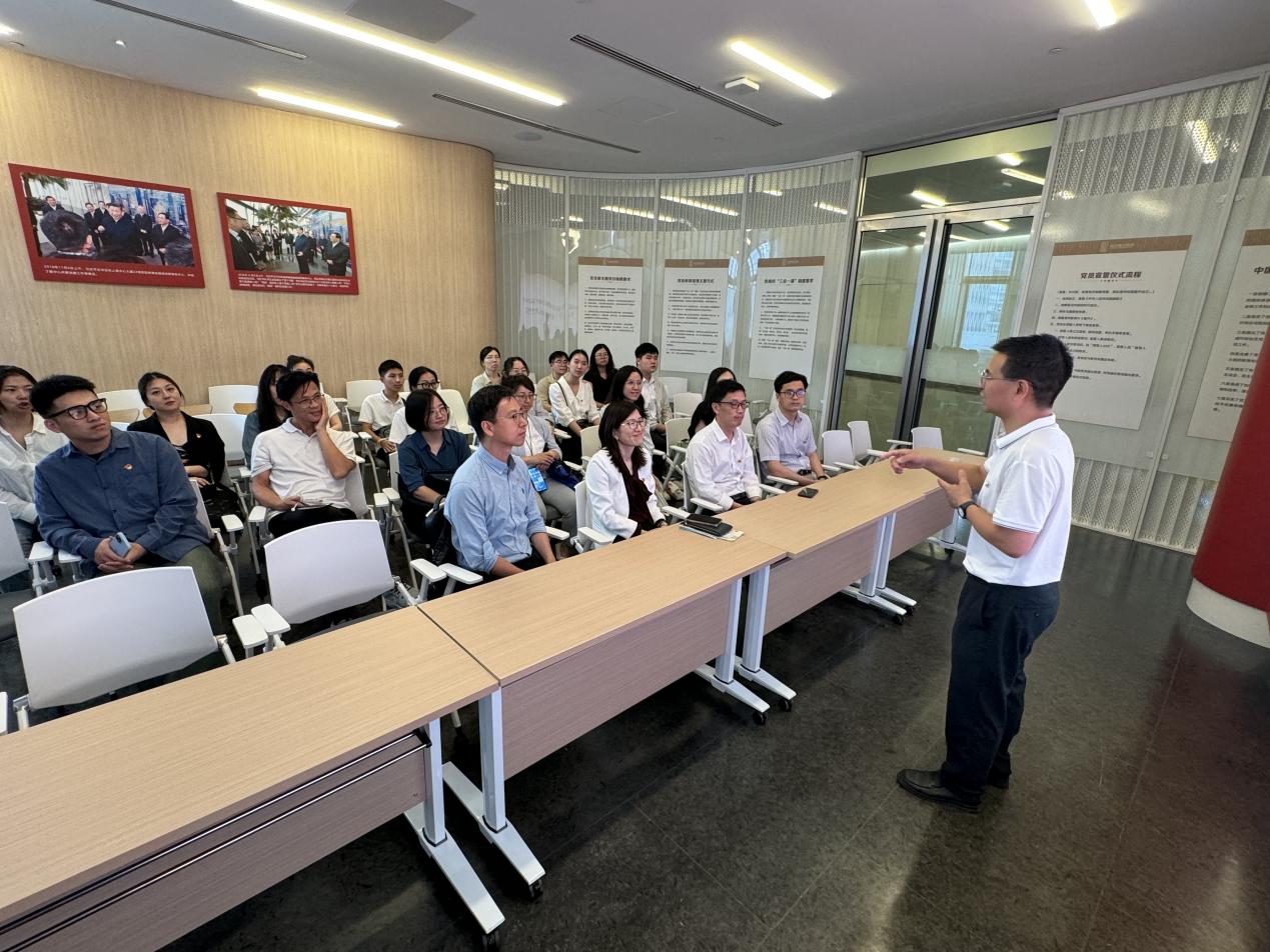在党群服务中心活动室,何建木处长为师生党员讲授了一堂别开生面的党课。他详细介绍了陆家嘴金融城的发展以及在党建工作方面的创新探索,陆家嘴金融城通过与各级各类党组织开展党建联学、活动联办、资源联动,全力打造起产业集聚、人才广聚、资源汇聚的国际一流金融城,尤其是以高质量党建引领高质量人才培养和服务,开拓“党建+人才”新模式,在人才培养、适岗实训、拓展就业、产学研等方面加强合作,促进学科链、产业链、人才链精准对接与深度融合,实现人才共享协同发展,为建设国际一流人才高地,实现人才引领驱动高质量发展作出积极贡献。