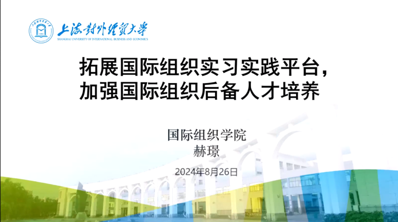 国际组织学院(贸易谈判学院)副院长徐昕、党委副书记程栋和国际经贸规则系赫璟老师分别通过专题讲座的形式,介绍了学院人才培养体系、生涯发展规划和奖助体系、海外交流和国际组织实习实训项目。