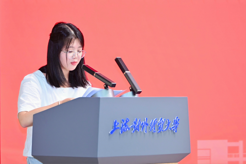 24级国际经贸规则专业徐姝怡作为本科新生代表发言。她表示将在大学学习生涯中努力夯实专业基础,拓展全球视野,将成长为国际组织后备人才作为自己奋斗的目标。