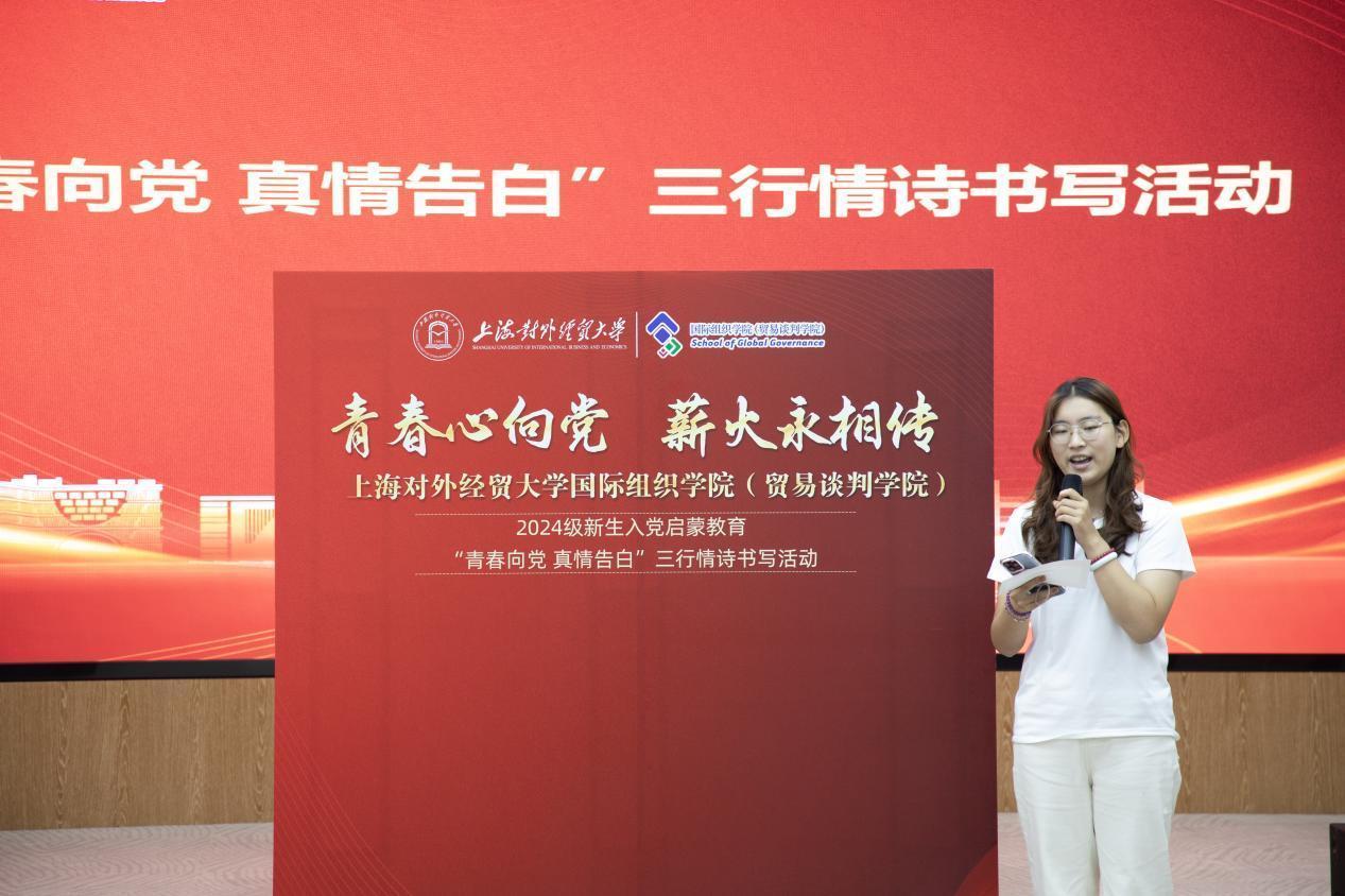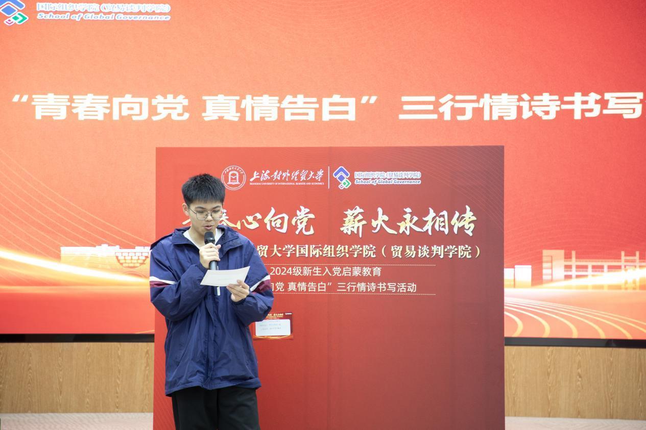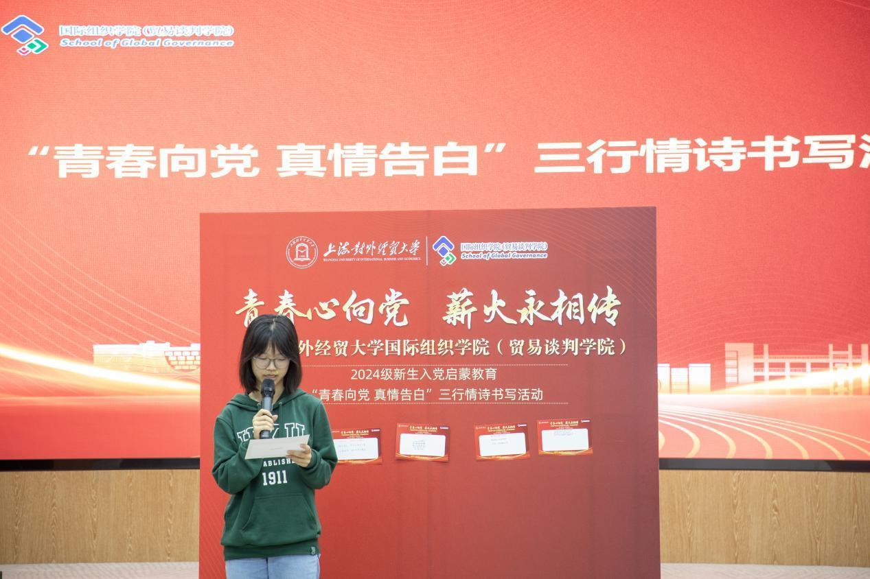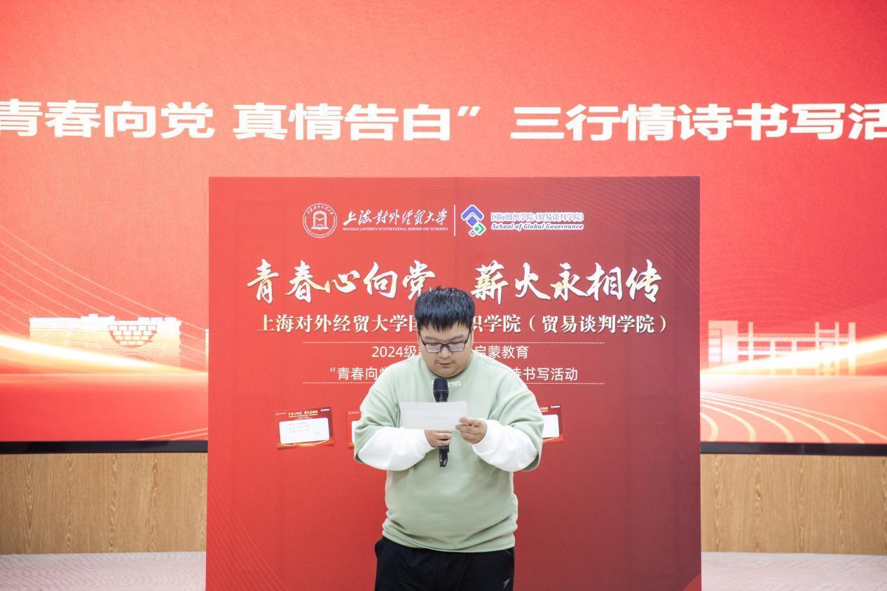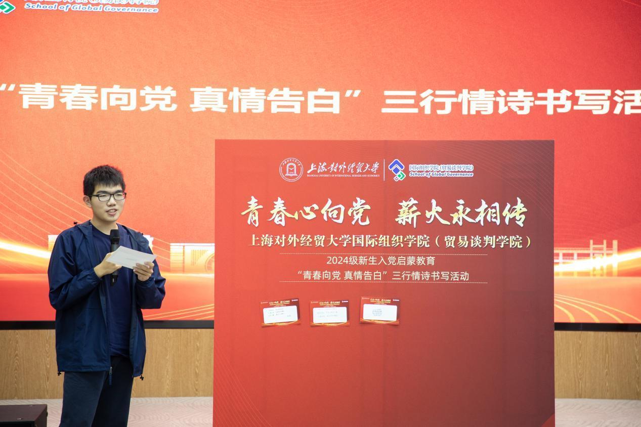 入党启蒙教育系列课程之后,举行了“青春向党 真情告白”三行情诗书写活动。同学们在卡片上将自己对党的敬爱之情化作一句句诗行,并分享了自己的原创诗句,诉说自己对党的深情告白。现场同学纷纷表示,作为新时代的青年,要不断加强理论学习,努力提升政治素养,牢记伟大建党精神,坚定理想信念,以实际行动向党组织靠拢,向身边优秀的党员学习,早日成为一名合格的共产党员,为实现中华民族伟大复兴做出应有的贡献。