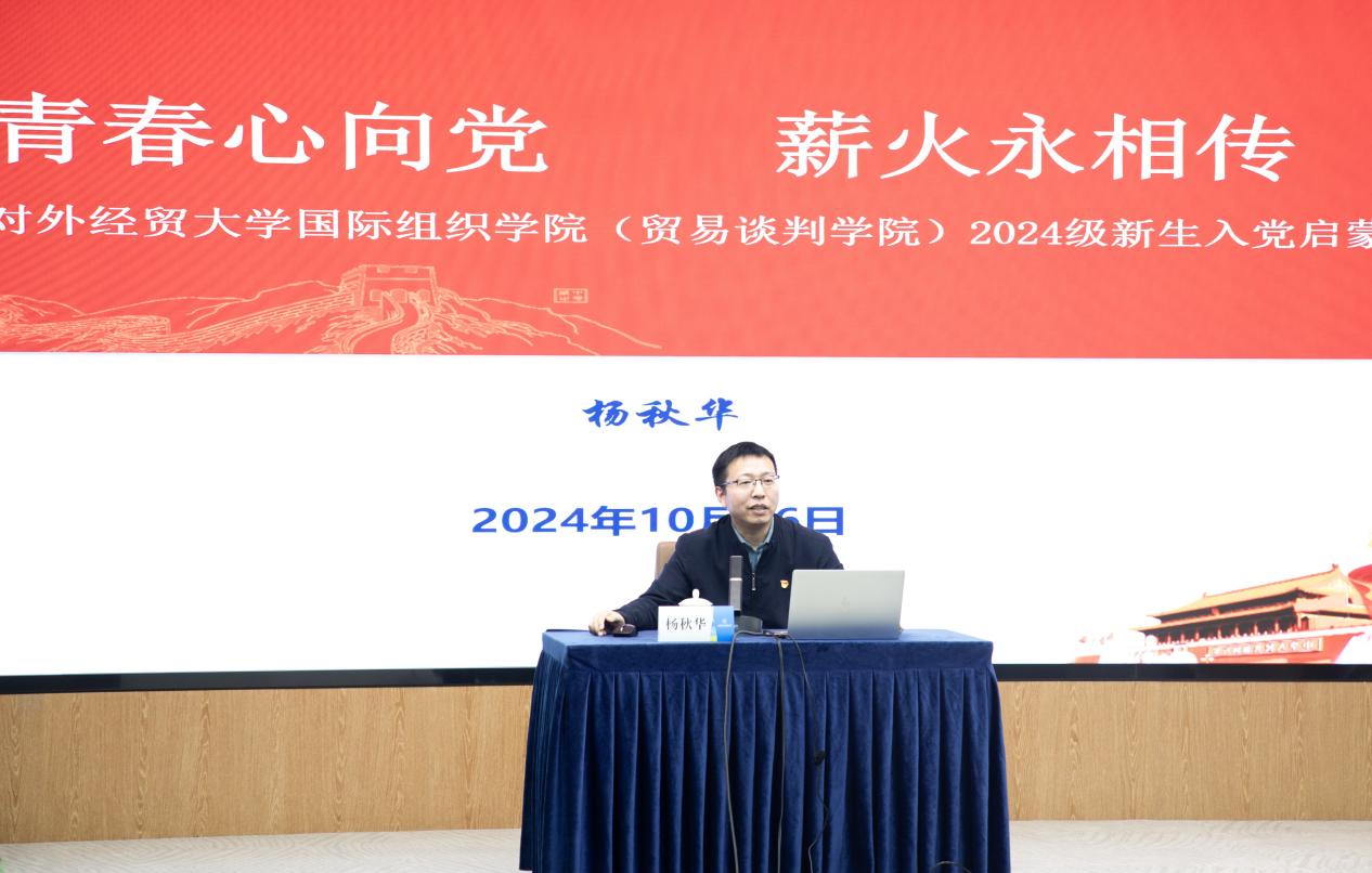 为加强新生理想信念教育,帮助新生正确认识中国共产党,了解党的历史,端正入党动机,10月26日上午,必赢626net入口首页国际组织学院(贸易谈判学院)在松江校区信息楼213报告厅举办2024级新生入党启蒙教育。活动邀请同济大学党委组织部副部长杨秋华作专题报告,国际组织学院(贸易谈判学院)党委书记刘素贞、党委副书记程栋分别授课,学院教师代表以及2024级全体新生参加活动。活动由程栋主持。