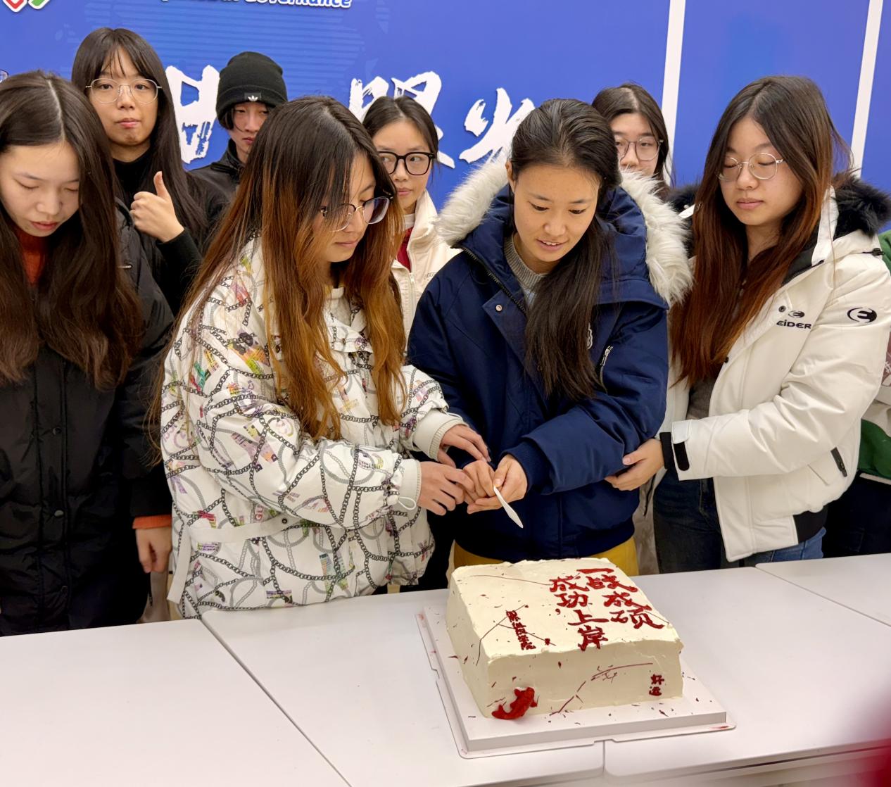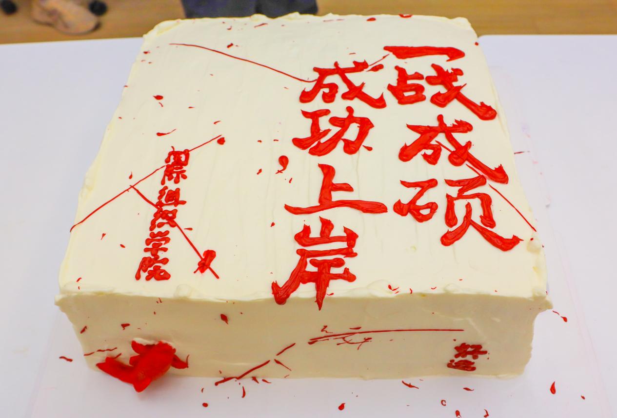 学院还为同学们精心定制了一个考研好运创意大蛋糕。现场师生们在温馨欢快的氛围中共同分享这份美好的祝福和甜蜜。