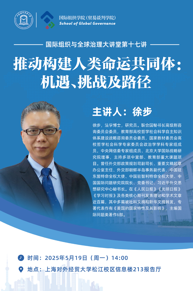 国际组织与全球治理大讲堂第十七讲预告 | 推动构建人类命运共同体机遇、挑战及路径